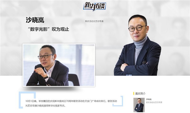 10月1日晚,举世瞩目的庆祝新中国成立70周年联欢活动在天安门广场成功举行。联欢活动光艺总导演沙晓岚接受新华社独家专访。